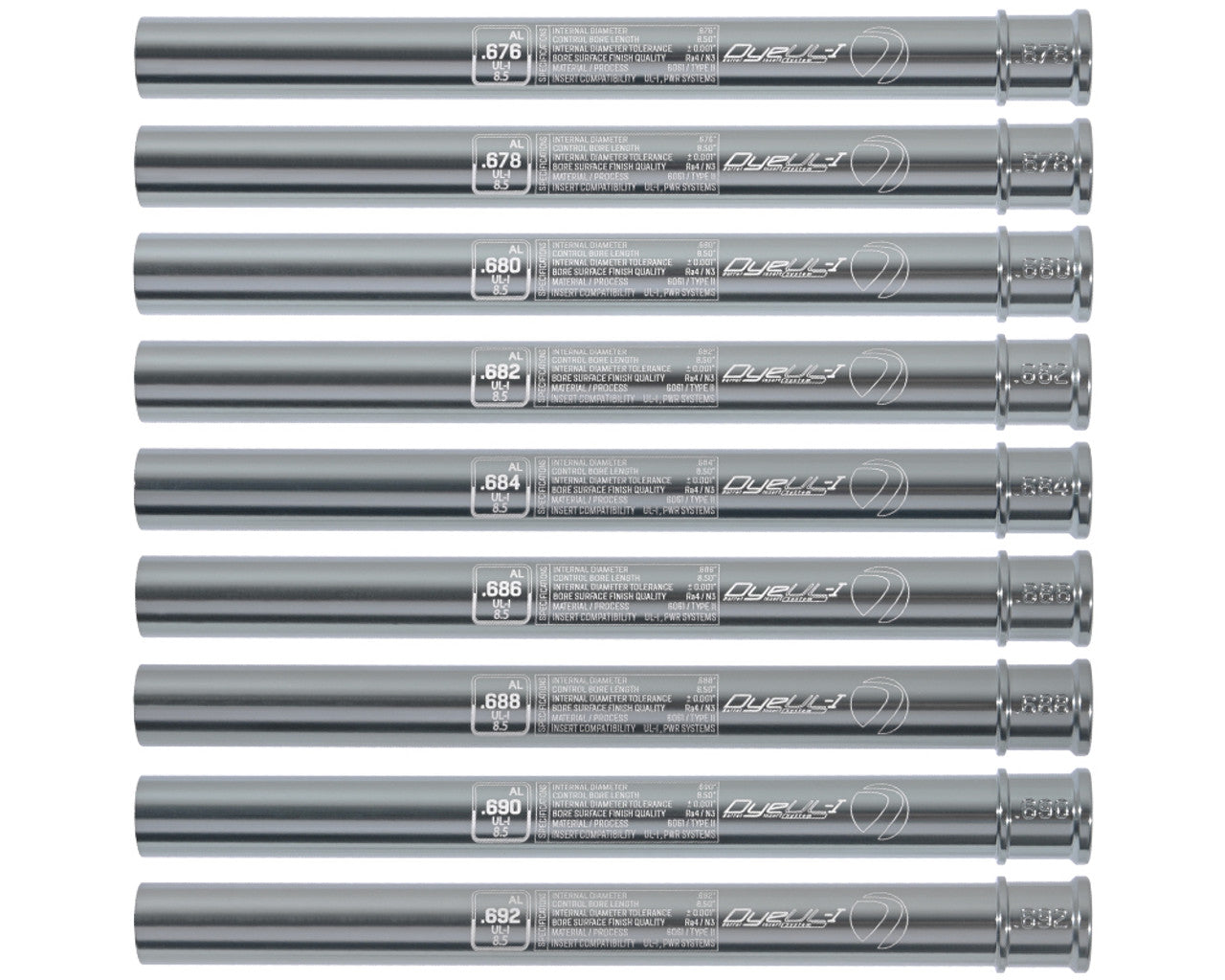 Interchangeable Bore Inserts: The DYE UL-I Barrel Insert System offers a set of 9 bore inserts with various diameters ranging from .676 to .692. These inserts can be easily swapped within the UL-I barrel system, allowing players to quickly adapt to different paintball sizes and achieve the best possible barrel-to-paintball match. Compatible with barrels that accept the PWR insert system.