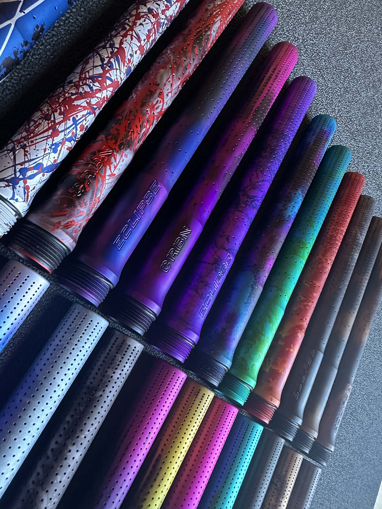 Premium S63 Pro Nano FL barrel tips featuring custom colorways by Aesthetic Anodizing. All tips are compatible with the Planet Eclipse S63 barrel system and PWR™ inserts.