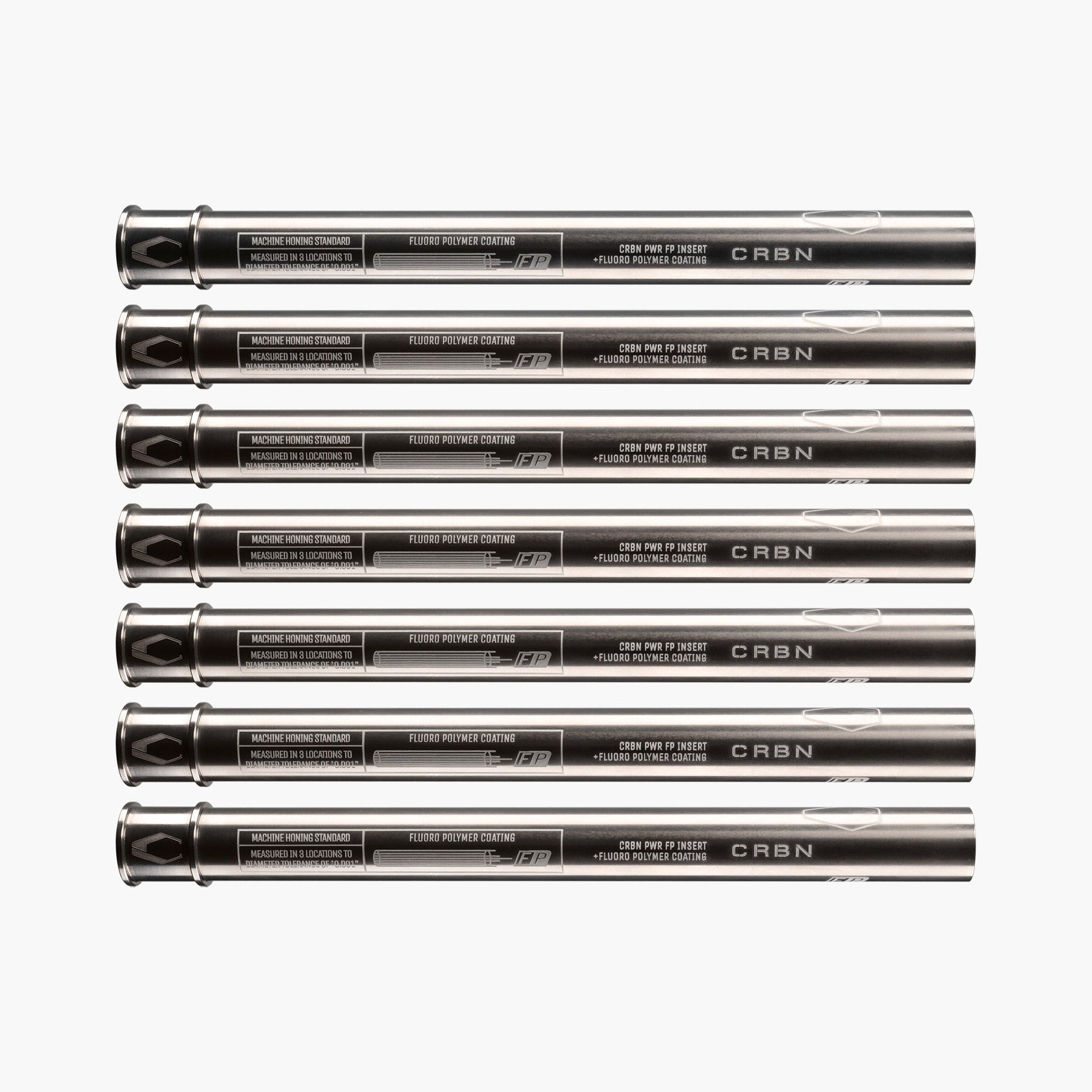 The CRBN FP Inserts build on the proven PWR™ System, with 7 optimized bore sizes and finished with laser-etched labeling. Each 8.5" insert is precision broached and micro-honed for the utmost accuracy. The PWR™ Insert's chamfered breech opening and stabilized collar assists untimely ball breaks in the barrel, making it the best insert system available.