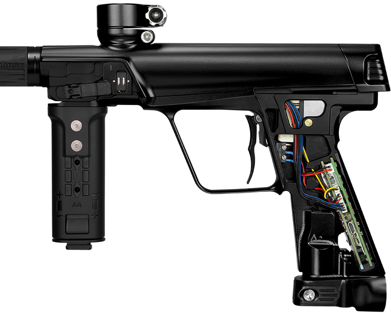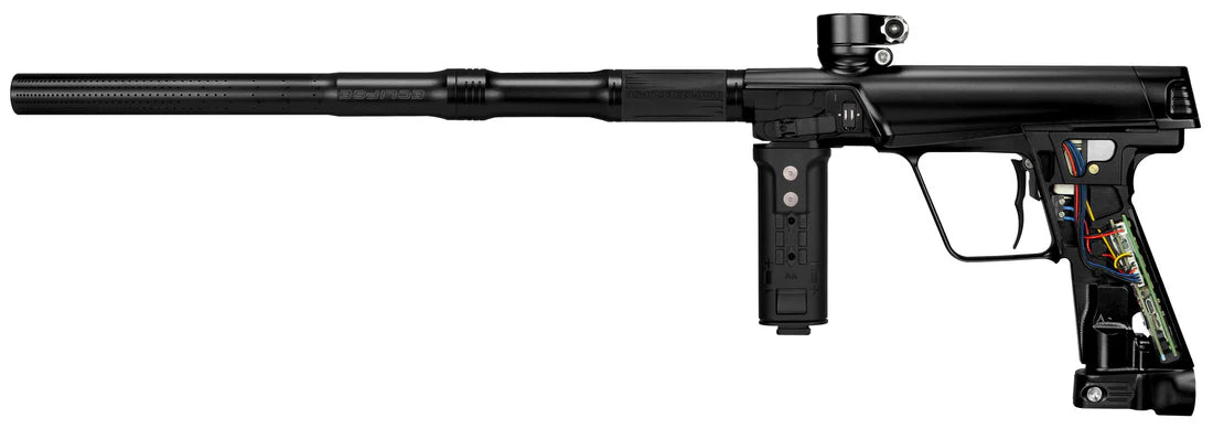 The CS3 Pro slides into the pro pits with ease thanks to its stripped-back styling and smooth contours, making it easy to wipe down between points. The heavily notched bolt bonnet is optimized for grip. Taking notes from its brother in arms, the GEO R5, the breech sensors and detents are now concealed beneath the foregrip, reducing paint ingress into the eyes and electronics from external hits and rub.