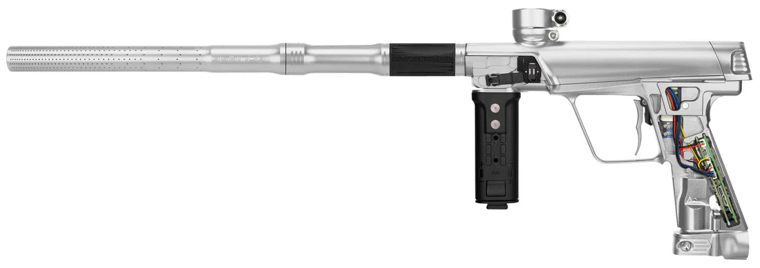 The CS3 Pro slides into the pro pits with ease thanks to its stripped-back styling and smooth contours, making it easy to wipe down between points. The heavily notched bolt bonnet is optimized for grip. Taking notes from its brother in arms, the GEO R5, the breech sensors and detents are now concealed beneath the foregrip, reducing paint ingress into the eyes and electronics from external hits and rub.