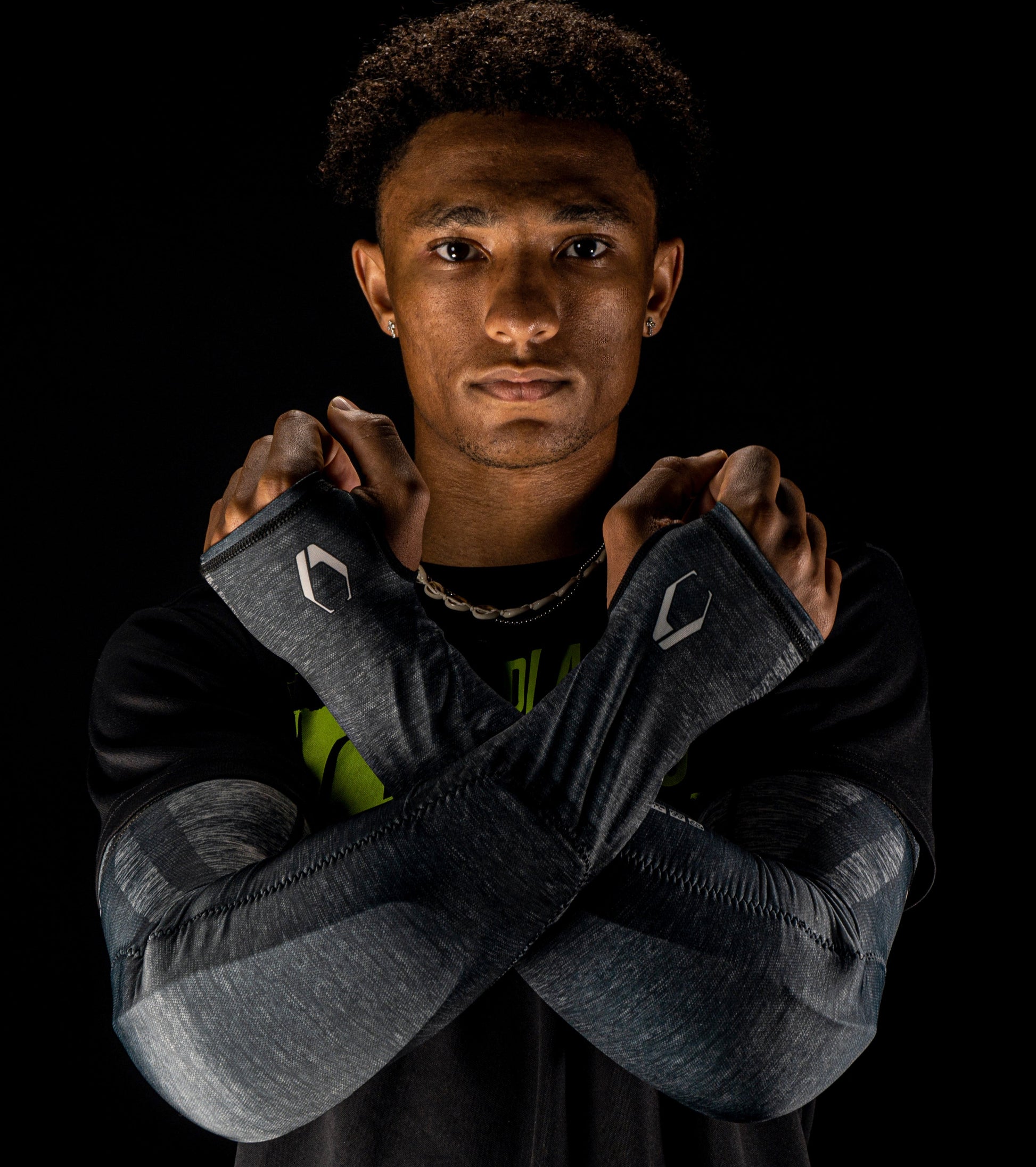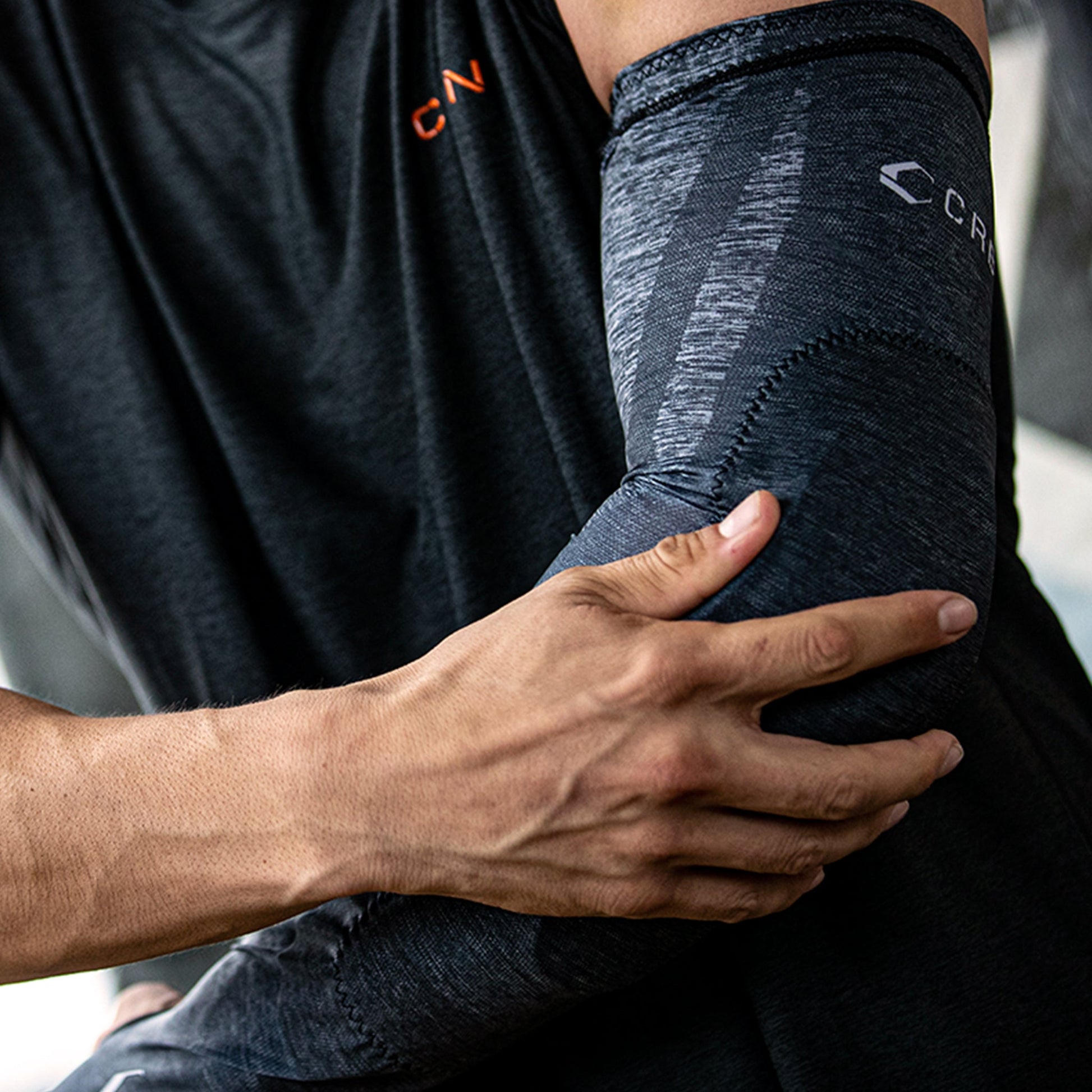 The compression arm sleeve is composed of a moisture wicking 85% polyester 15% spandex technical blend to improve breathability and range of motion. The slim two layer anatomical padding is designed to provide precise protection, compress muscles, fit snug and stay in place during intense activity.