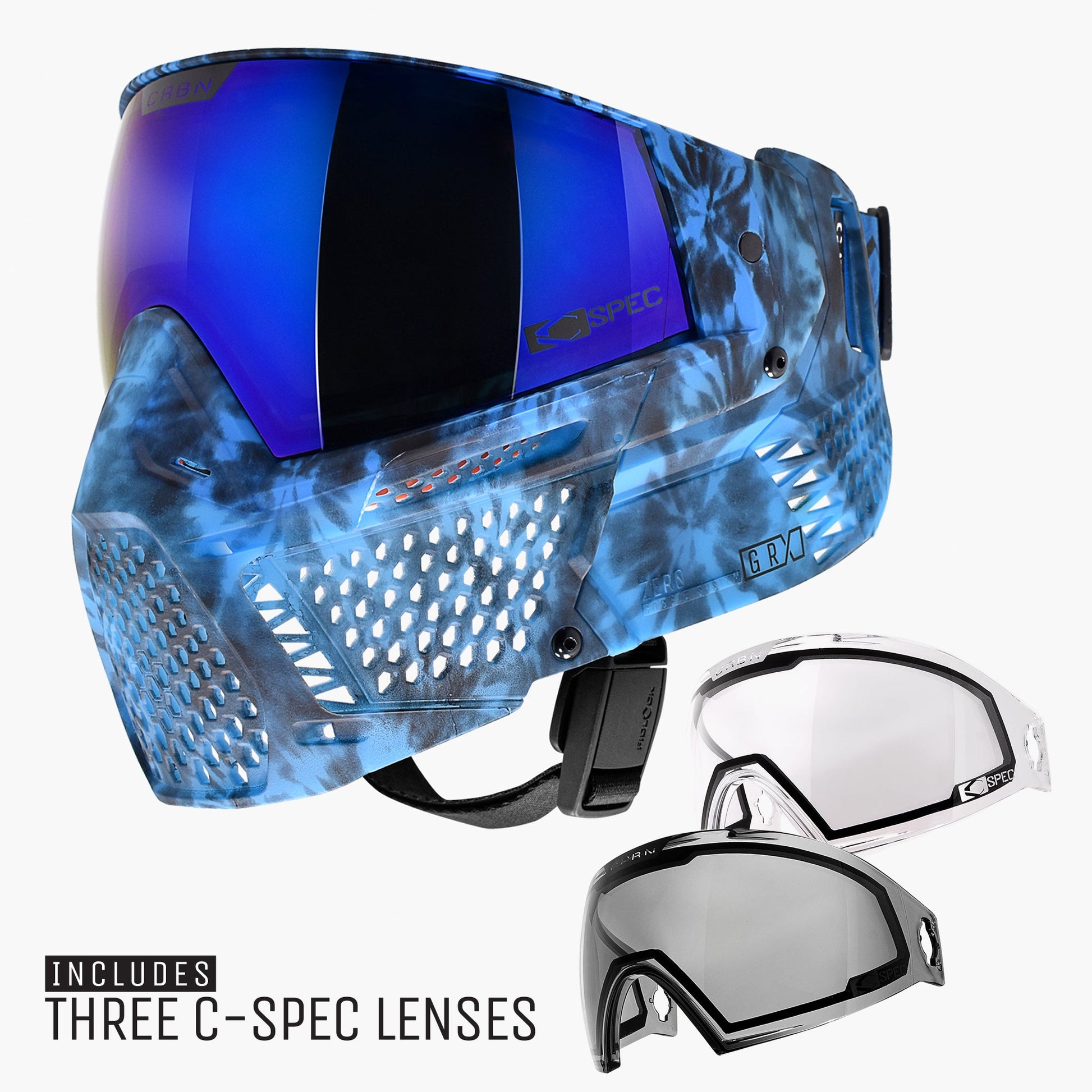 ZERO GRX include three C-SPEC lenses: a featured Highlight lens that complements the chosen colorway along with a versatile Midlight lens and standard clear Lowlight lens. Each GRX is packaged with a matching visor, sublimated matching goggle slip bag, zippered goggle case, and microfiber cleaning cloth.